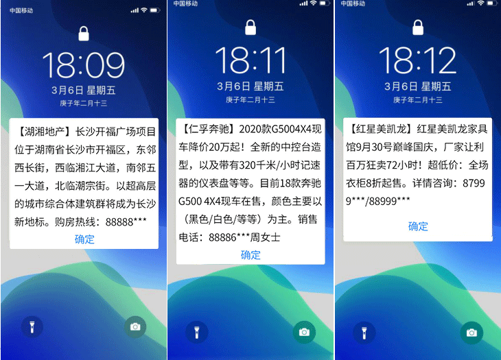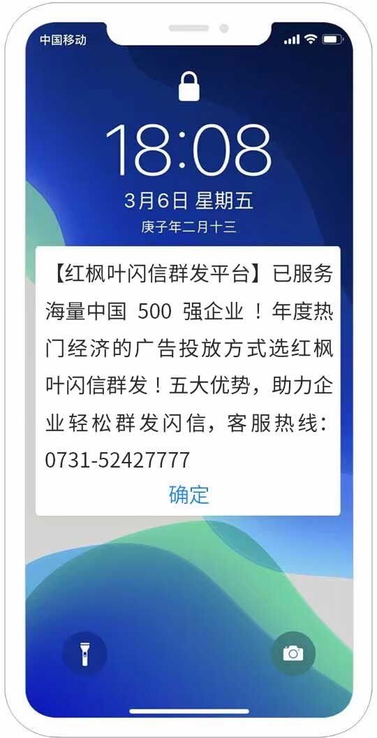 沒有一種短信能不被手機(jī)攔截呢?試試紅楓葉閃信群發(fā),紅楓葉閃信群發(fā),(又稱彈屏短信、霸屏短信)是指用戶在收到閃信群發(fā)內(nèi)容后,無需打開,短信內(nèi)容直接顯示在用戶手機(jī)屏幕上,用戶如果沒有點(diǎn)擊閱讀,則閃信內(nèi)容一...